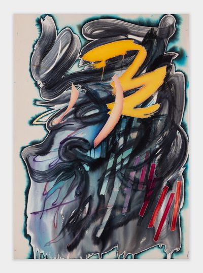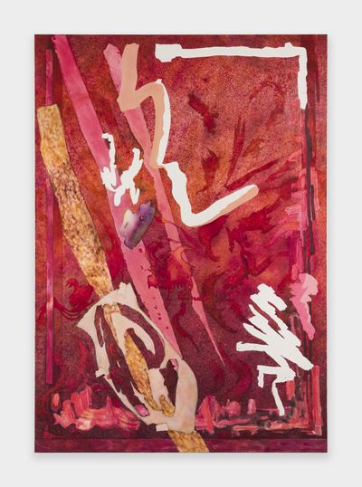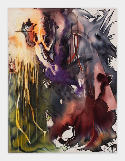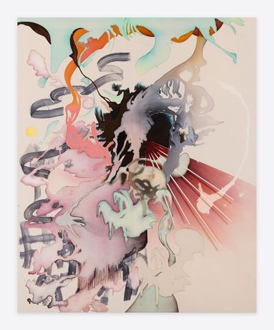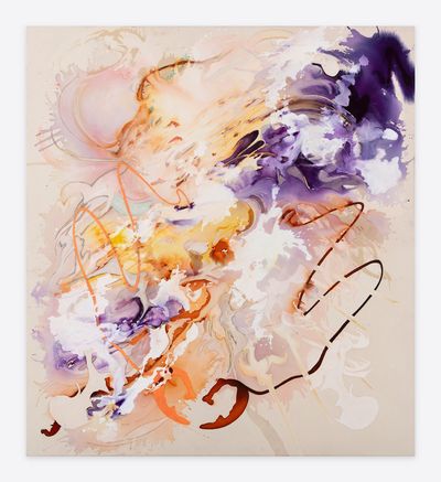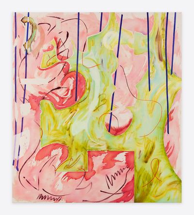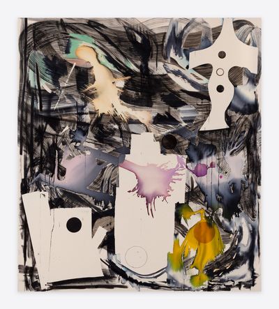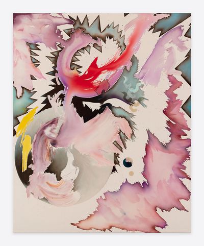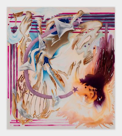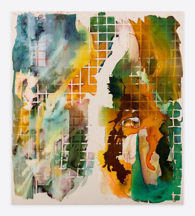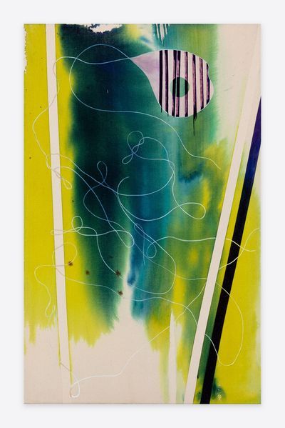 Jorunn Hancke Øgstad is a Norwegian artist exploring the language of abstraction through painting and sculpture. Using fabric dye, resin and plastics on unprimed canvas, the artist mimics watercolor, spray paint and print processes, often within the same work, co-opting techniques commonly found in expressionist, street and pop art practices.