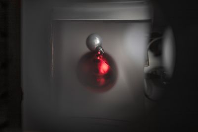 Moving clockwise in the gallery, the viewer is faced with two lonesome Christmas ornaments, like peering into an emptied patio storage container and finding misplaced, season inappropriate decoration instead of the usual seat cushions or outdoor party lights (angst, 2023).