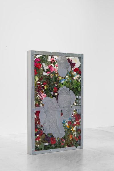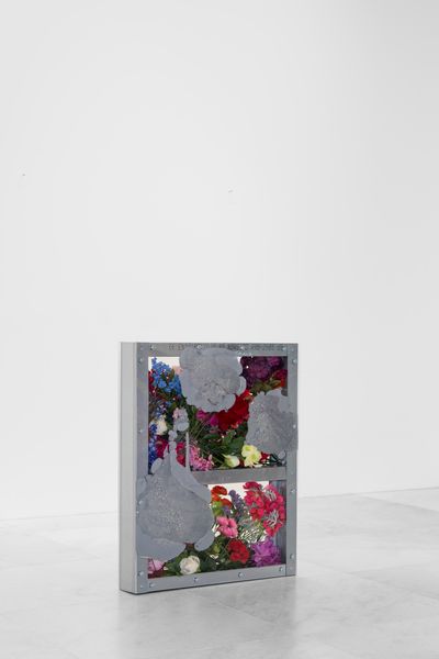 Three new sculptures by American artist, Amy Yao, made with standard building materials, including plexiglass and steel beams encase varied arrangements of artificial flowers and hand colored silver resin.