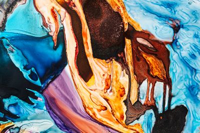 canvas, the artist mimics watercolor, spray paint and print processes, often within the same work, co-opting techniques commonly found in expressionist, street and pop art practices.