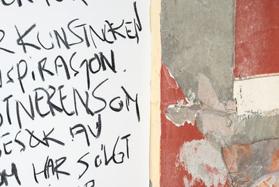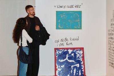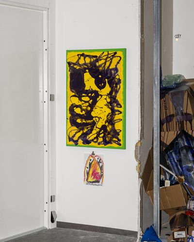 Painting (Melgaard): Acrylic, shampoo and conditioner on canvas Drawing (Melgaard & Ytre-Eide): oil pastels and marker on paper