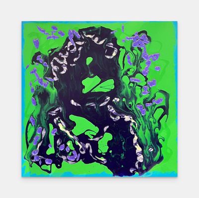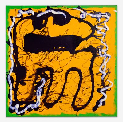 Continuing this exploration of unconventional materials, for Midnight Ride: Oribe Paintings his solo exhibition at Nedre Slottsgate 8 Melgaard employs yet another unexpected medium: Oribe shampoo and conditioners. Founded by legendary hairstylist Oribe Canales, Oribe is a luxury haircare brand that is celebrated by beauty experts including top celebrity and editorial hairstylists. Known for high-performance formulas promising salon-quality results and glamorous hair-care experiences—the brand’s ethos is to transform everyday haircare routines into luxurious rituals emphasizing beauty and indulgence.