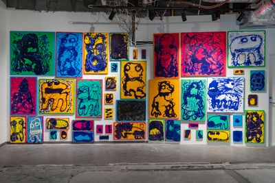 Throughout his multi-disciplinary practice, Melgaard has engaged in forward-thinking collaborations across beauty and fashion—with artists and designers such as Helmut Lang, Susan Cianciolo, Babak Radboy, and TELFAR. Notably, he created bespoke jewelry for miniature pigs in partnership with Norwegian jeweler Bjørg Nordli‑Mathisen (BJØRG) for The Casual Pleasure of Disappointment, exhibited at Red Bull Arts New York in 2017. Two years earlier, he handed over his paintings and sculptures to makeup artist Kanako Takase, celebrity hairstylist Bob Recine, and fashion designer Andre Walker, inviting them to freely reinterpret his work. Their interventions—through hairstyling, cosmetics, and garment construction—transformed the pieces into hybrid objects that blurred the lines between art, design, and fashion. Presented at a Parisian gallery, the exhibition became a total environment where beauty, art, and commodity intersected, collided, and ultimately coexisted. [1]